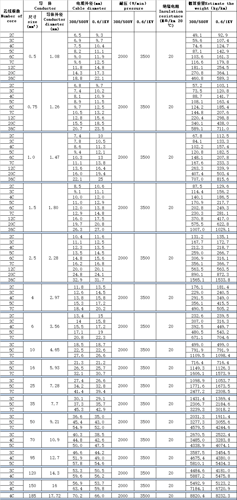 - · 柔性PVC非屏蔽控制電纜? CLASSIC? YY