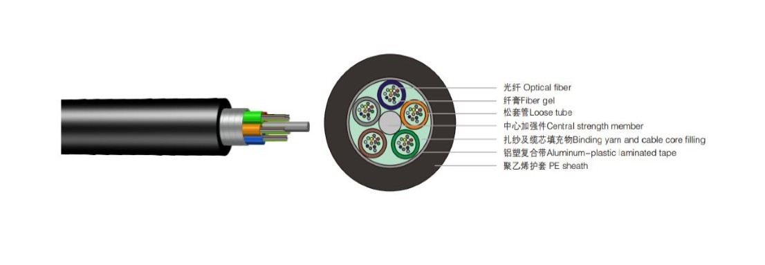 • 護套可用低煙無鹵阻燃材料生產(此時光纜型號為GYTZA)。