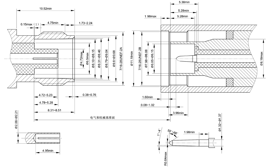 | 特性阻抗 | 50Ω | 內導體 | 插針 | 黃銅 | 鍍金 | |