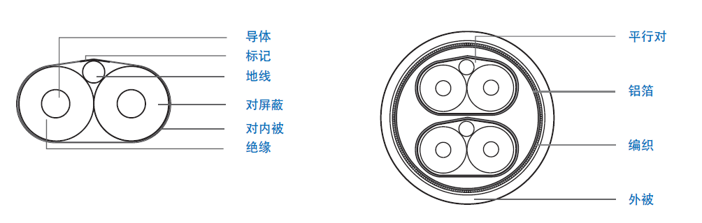 | 導體:24 AWG 單根鍍銀銅線, 外徑0.508 mm | 外屏蔽:38 AWG 鍍錫導體,重疊率 80% |